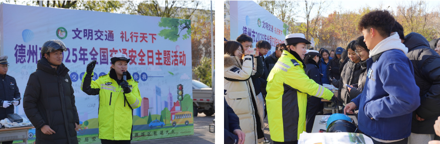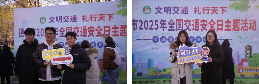 德州学院与德州市公安局交通警察支队紧密联动,围绕第十四个“全国交通安全日”,以“文明交通 礼行天下”为主题,在校内举办系列交通安全教育活动。活动通过“仪式引领、宣教深入”的形式,为师生带来立体化、沉浸式的教育体验。