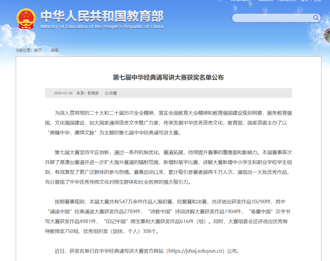 此次获奖,不仅是对参赛师生个人能力的高度肯定,更是学校文化育人成效的生动彰显。这一成绩将进一步激发全校师生传承弘扬中华优秀传统文化的热情,推动学校传统文化教育工作向更深层次、更高质量迈进。