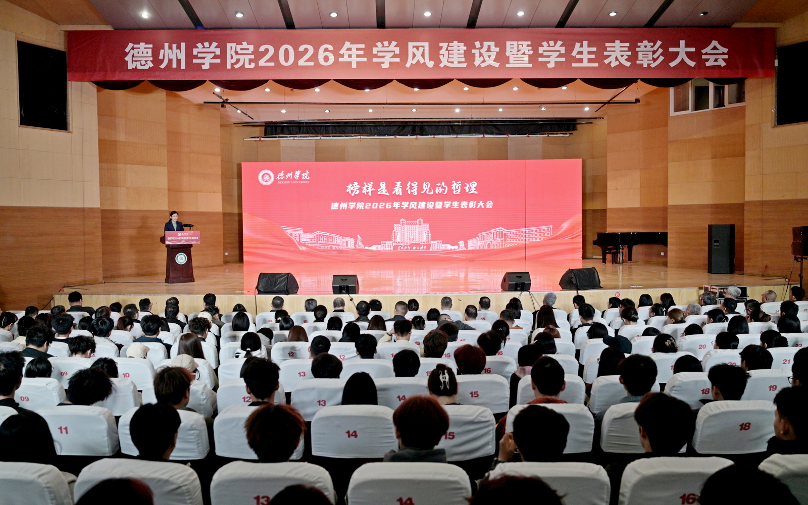 3月31日,学校2026年学风建设暨学生表彰大会在音乐厅举行。大会深入学习贯彻习近平总书记关于教育的重要论述,全面落实立德树人根本任务,总结回顾过去一年学风建设成果,表彰先进典型,激励全校师生以昂扬姿态投身“十五五”新征程,奋力谱写高水平应用型大学建设新篇章。校党委书记吴君出席会议并讲话,党委委员、副校长徐静、单振涛,党委委员、宣传部部长冯琨参加会议。