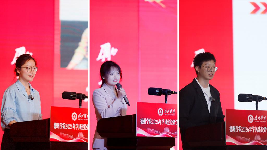 国家奖学金获得者代表、法学与公共管理学院姚金贝,山东省师范技能大赛一等奖获得者代表、教师教育学院薛静蕾,“挑战杯”获奖团队代表、计算机与信息学院李承旺等三名同学分别作交流发言,分享了他们在求知探索、实践创新道路上的奋斗故事与成长感悟。