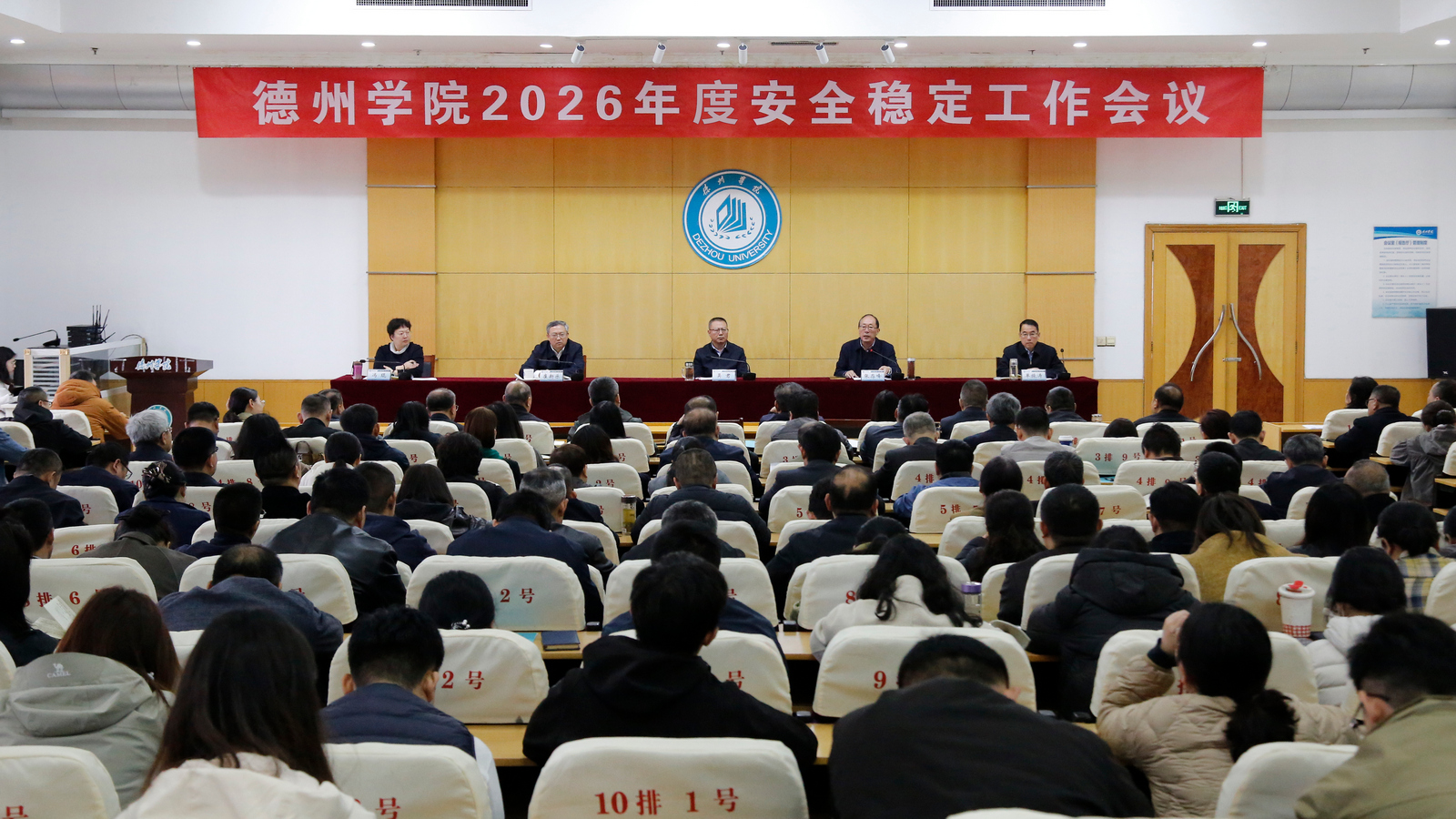 4月9日,学校在厚德楼四楼报告厅召开2026年度安全稳定工作会议。会议深入学习贯彻习近平总书记关于安全生产和防范化解重大风险的重要论述、重要指示批示精神,落实党中央、国务院决策部署和省委省政府要求,总结2025年工作,分析当前形势,部署2026年重点任务,全力防风险、保安全、护稳定、促发展,以高水平安全保障学校“十五五”发展开好局、起好步。校党委书记吴君出席会议并讲话,党委副书记张存峰作工作报告,纪委书记、省监委驻德州学院监察专员崔新乐出席会议,党委委员、副校长单振涛主持会议,党委委员、宣传部部长冯琨出席会议。