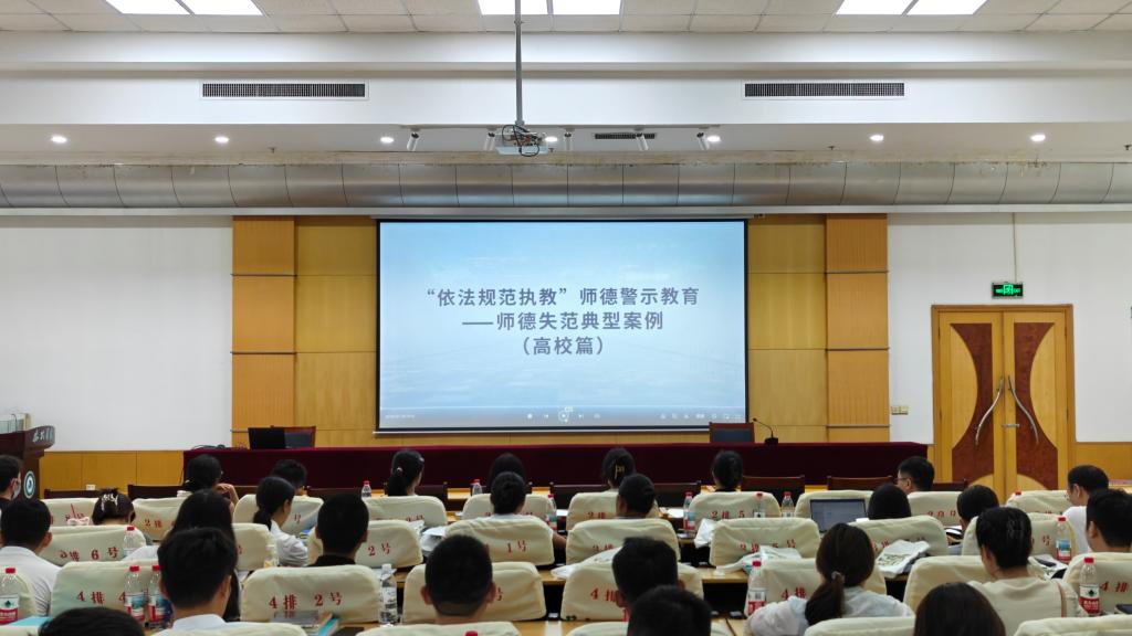 9月3日下午,学校组织2025年全体新入职教师开展师德师风警示教育活动,集中观看《“依法规范执教”师德警示教育——师德失范典型案例(高校篇)》专题视频,为近百名青年教师上好职业成长“第一课”。