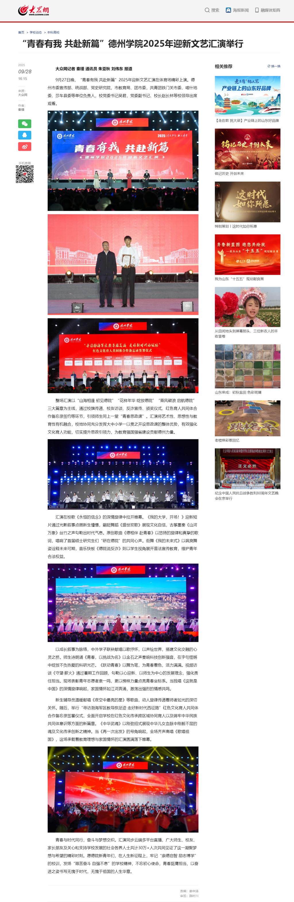 【大众网】“青春有我 共赴新篇”德州学院2025年迎新文艺汇演举行