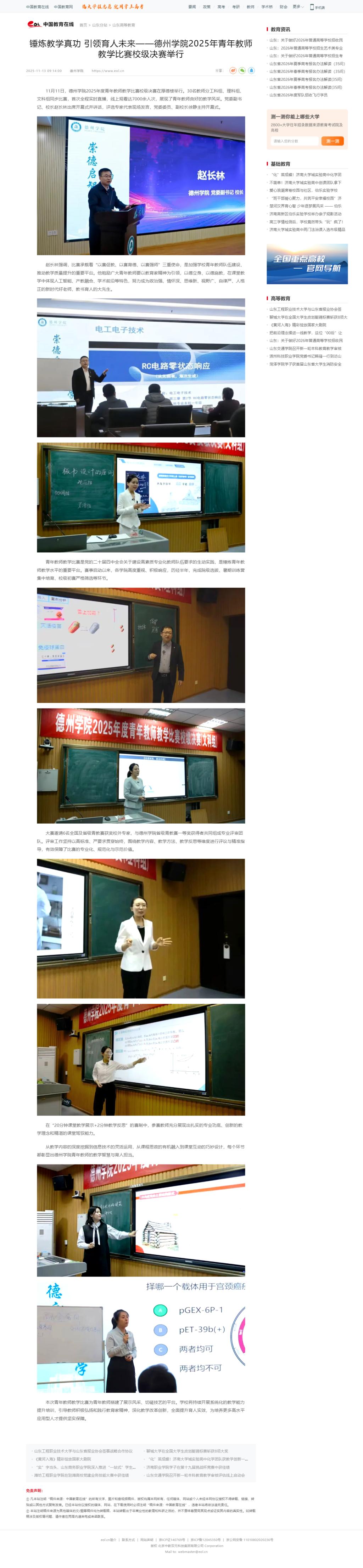 【中国教育在线】锤炼教学真功 引领育人未来——德州学院2025年青年教师教学比赛校级决赛举行