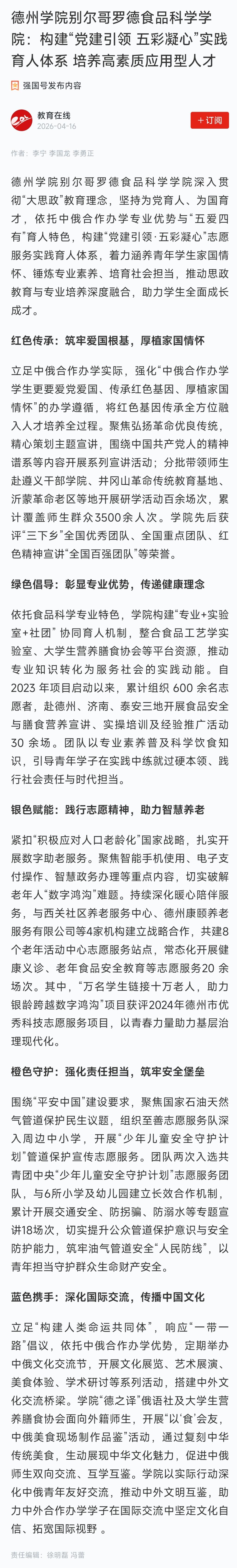 【学习强国】德州学院别尔哥罗德食品科学学院:构建“党建引领 五彩凝心”实践育人体系 培养高素质应用型人才