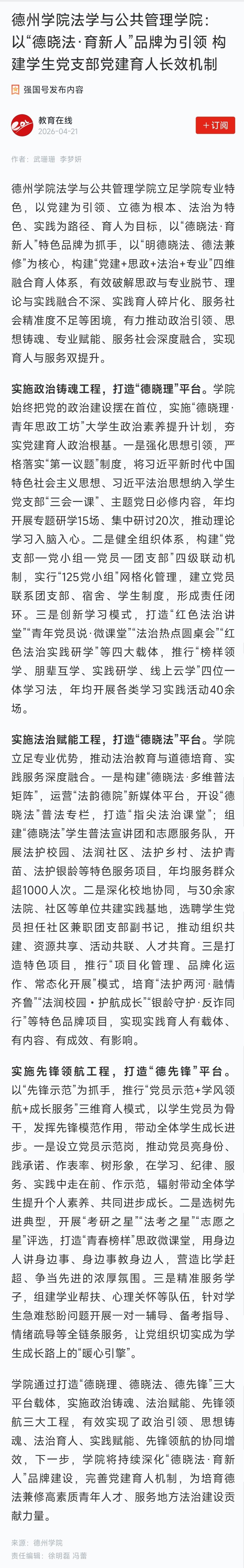 【学习强国】德州学院法学与公共管理学院:以“德晓法·育新人”品牌为引领 构建学生党支部党建育人长效机制